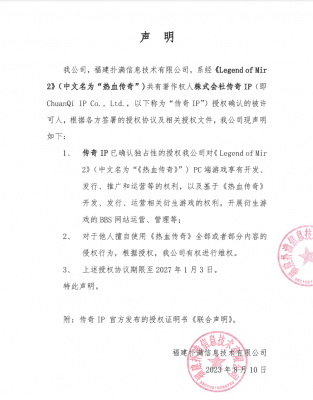 202404-05关于传奇IP已确认对开云电竞授权有效之声明